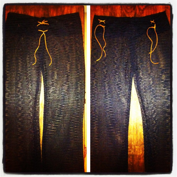 My mom is 6’2 and I know with her long legs she has a terrible time finding pants, it’s a problem all of the girls in our family share. I’ve been making these really comfortable and versatile beach pants like the ones above since I quit my regular job this past June. I knew she was fond of the material’s breathability so I tailored a pair especially for her, subsequently adding in these little leather ties after recalling a pair of matching semi-stretch bells she got us both in the 90’s which had similar leather ties in the front for size-adjustability. (Ironically found at a store formerly known as Tall Etc.)